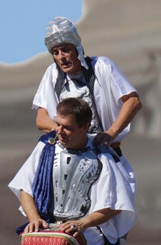 des Strassentheaters hochhält