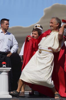 des Strassentheaters hochhält